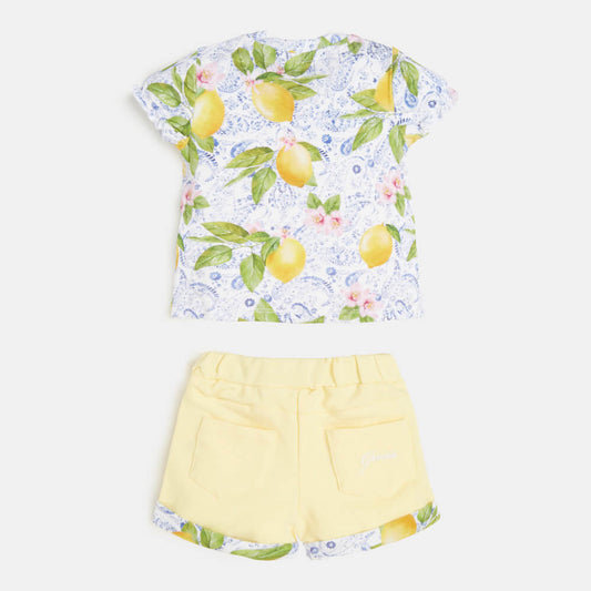 Baby Girls Lemon Print T-Shirt And Shorts Combo Set