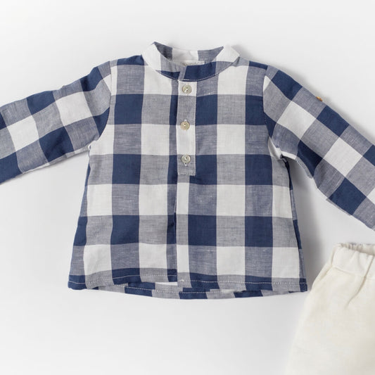 Baby Boys Navy & White Plain Shorts And Check Shirt Combo Set
