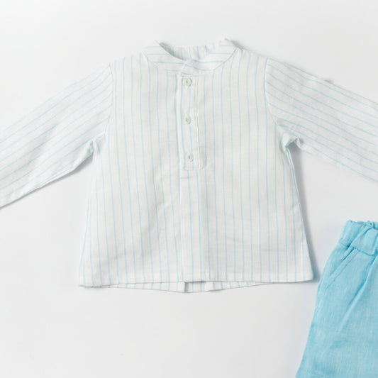 Baby Boys Blue & White Striped Shirt and Plain Shorts Combo Set