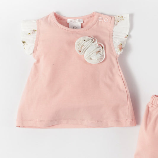 Baby Girls Pink T-Shirt With Flower Design And Shorts Combo Set