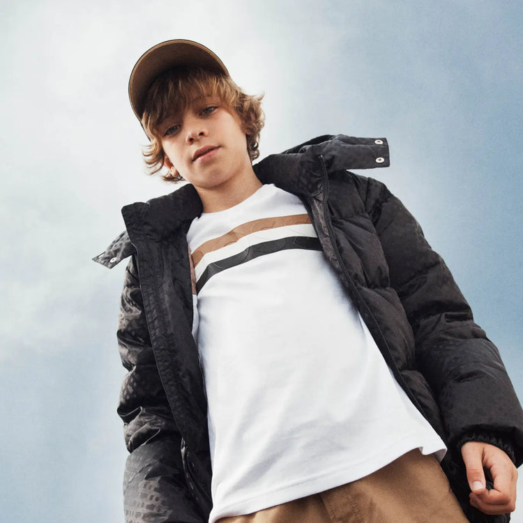 "Elevate his outerwear game with our Boys Jackets Collection. Explore trendy designs, from rugged bombers to stylish parkas. Each piece blends warmth with fashion, making a statement in any weather. Dress him in comfort and style. Explore and shop our fashionable jackets now!"