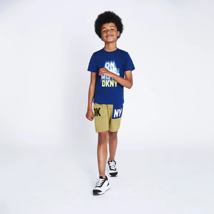 Boys Blue Bermuda Shorts With Printed Logo