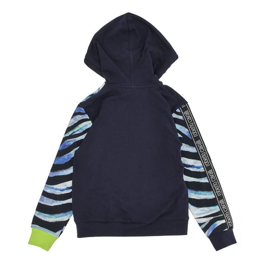 Boys Navy & Multi-Colour Fleece Hoodie Tiger Pattern