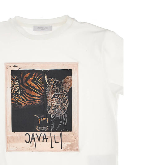 Boys White Tiger Tooth-embellished patch Jersey T-Shirt