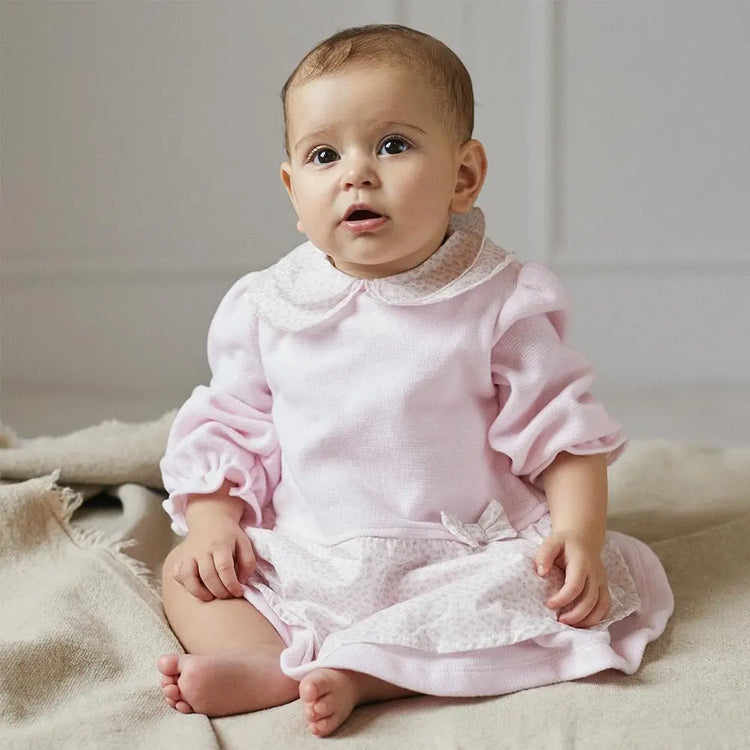 Baby Girls Pink Leggings and Flower Patterned Top Combo Set