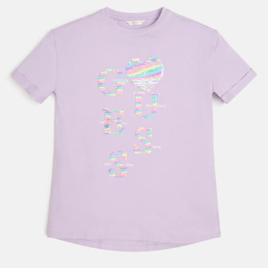 Girls Purple T-Shirt With Reversible Sequin Design