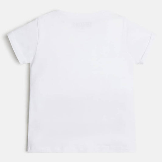 Girls White Short Sleeves Cotton T-Shirt