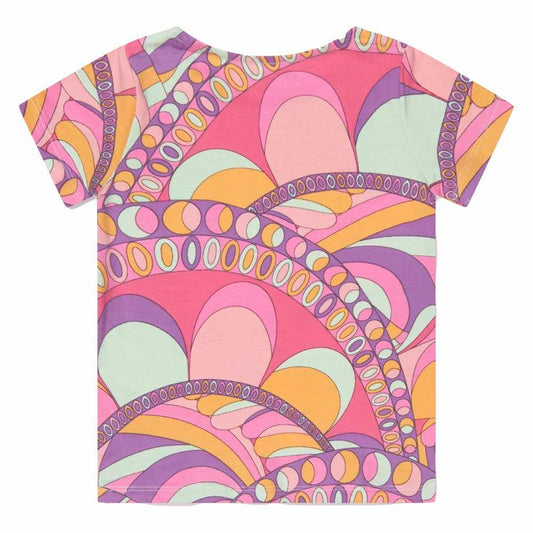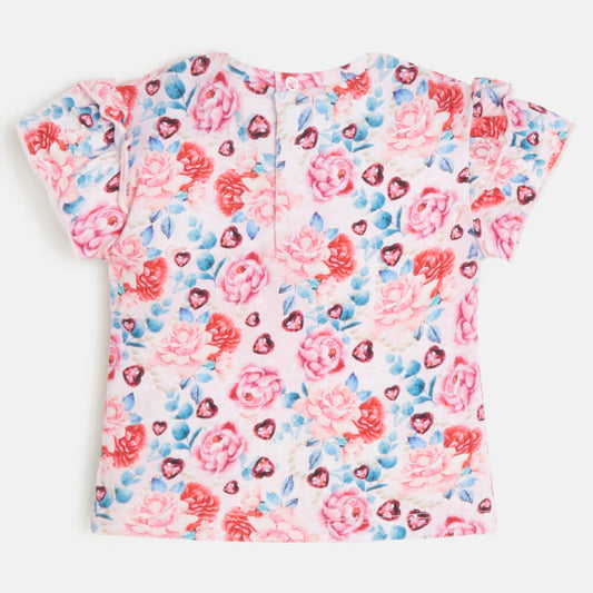 Girls Flower Pink Print Flower T-Shirt With Triangle Logo