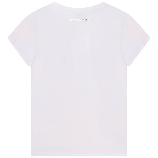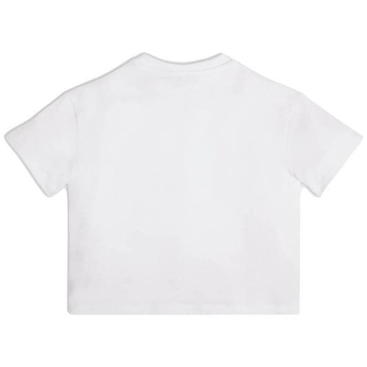 Girls White Midi T-Shirt With Nature Triangle Logo