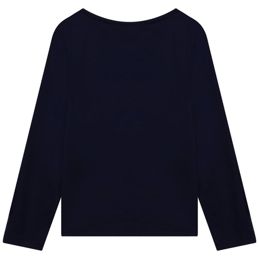 Girls Navy Shimmering Long Sleeve T-Shirt