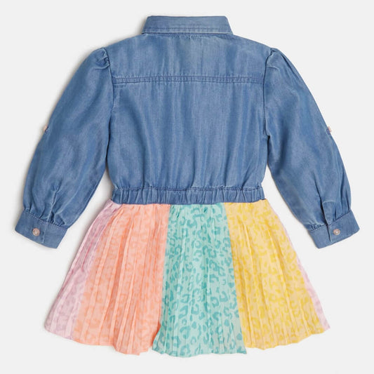 Girls Blue & Multi-colour Mixed Fabric Dress