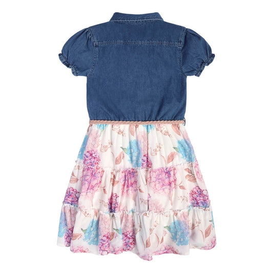 Girls Blue & Pink Mixed Fabric Half Denim Dress