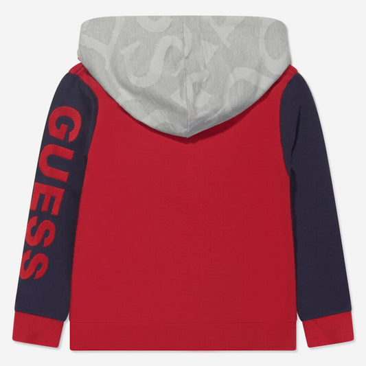 Boys Grey, Navy & Red Hoodie With Arm Logo