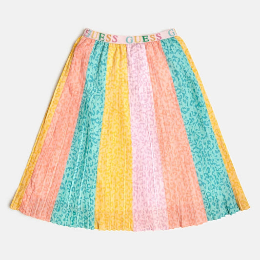 Girls Multi-colour Pleated Crepe Midi Skirt