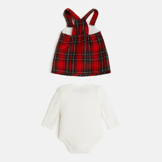 Baby Girls Red, White & Black Tartan Skirt With Babysuit Combo Set