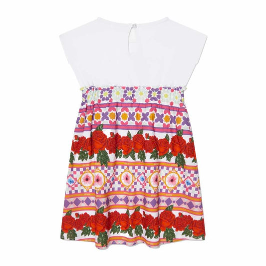 Girls Red, White & Multi-colour Mixed Fabric Dress