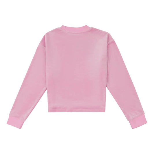 Girls Pink Velour Step Hem Crew Sweatshirt