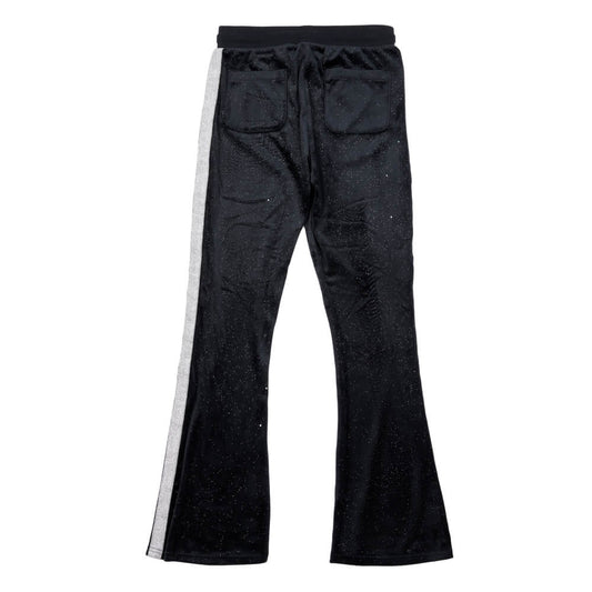 Girls Black Glitter Stripe Velour Bootcut Joggers