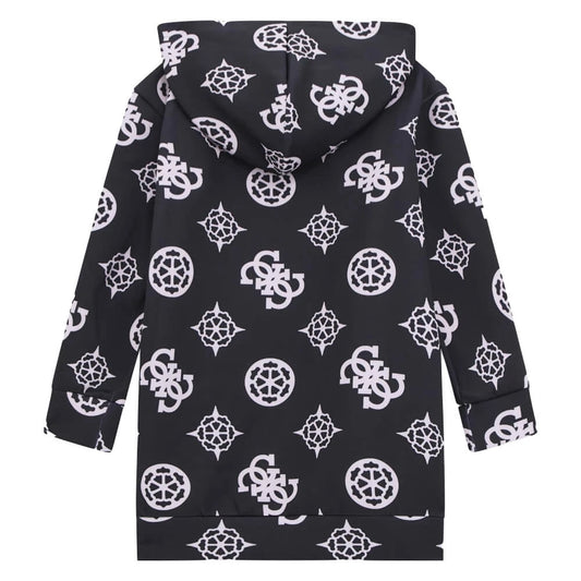 Girls Black & Pink Hooded Dress With Pattern